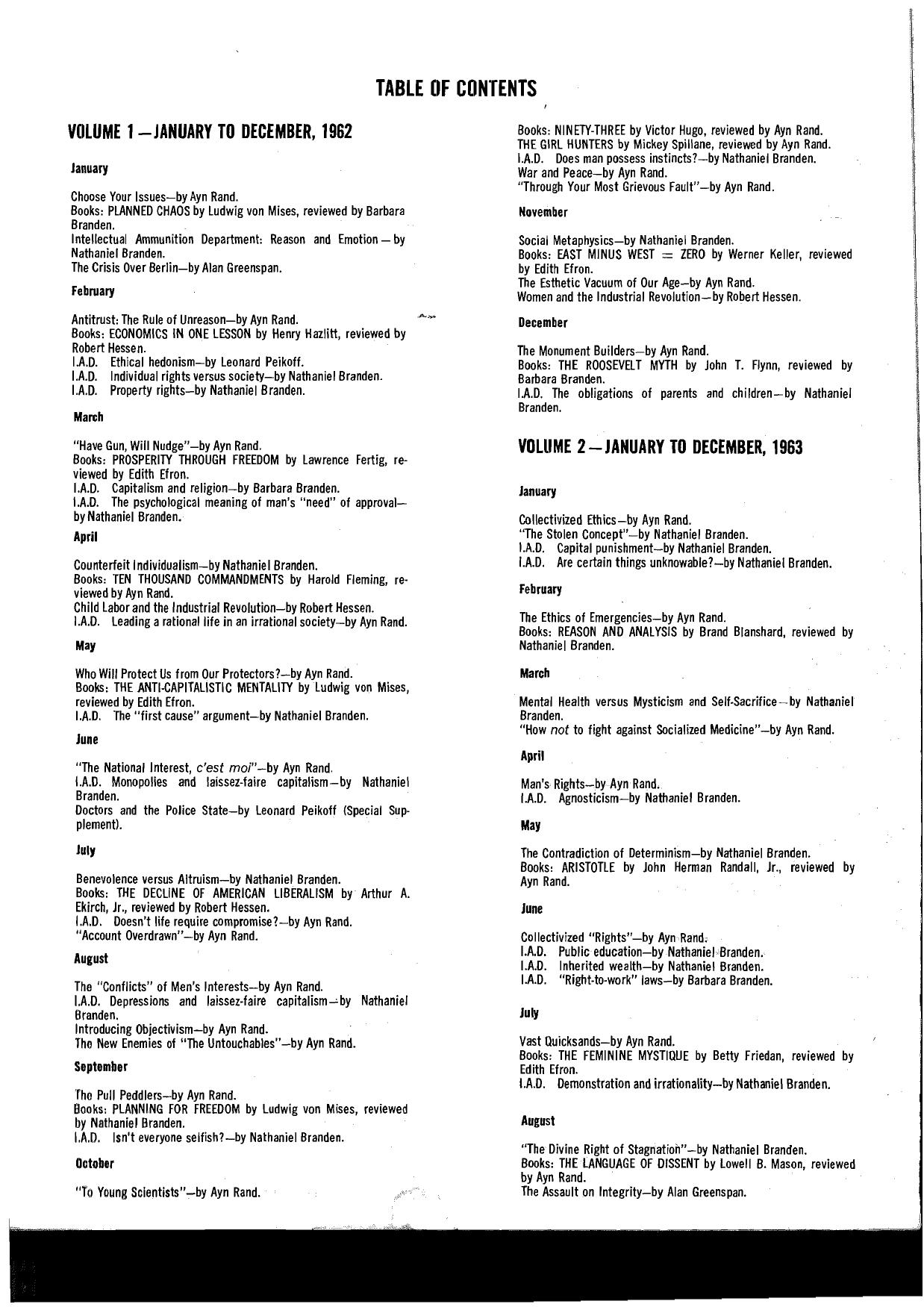The Objectivist Newsletter, 1962