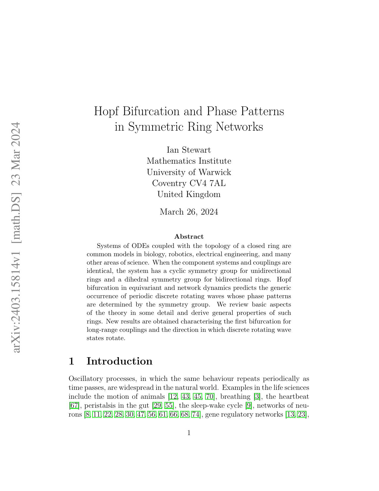 Hopf Bifurcation and Phase Patterns in Symmetric Ring Networks ...