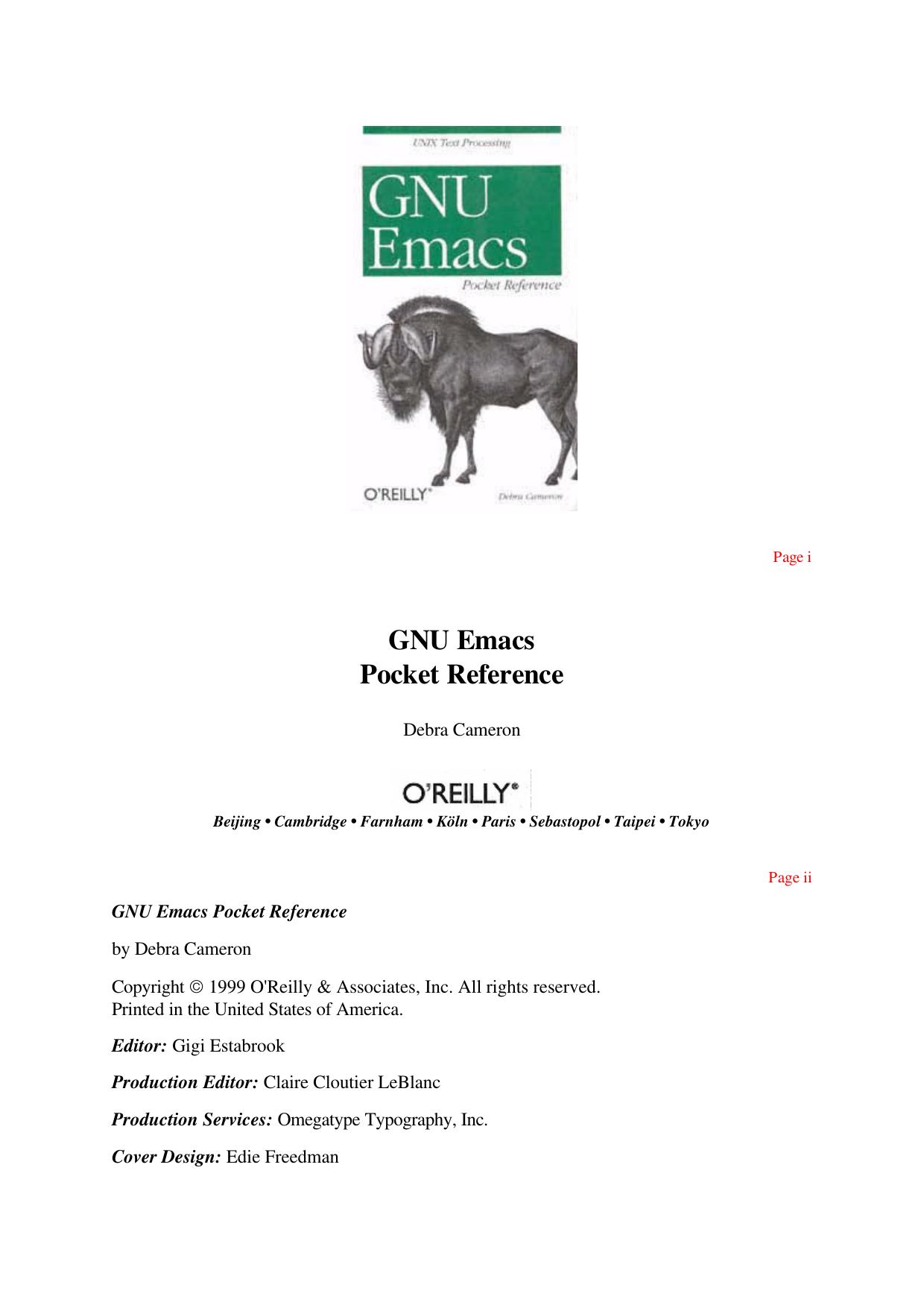 GNU Emacs Pocket Reference