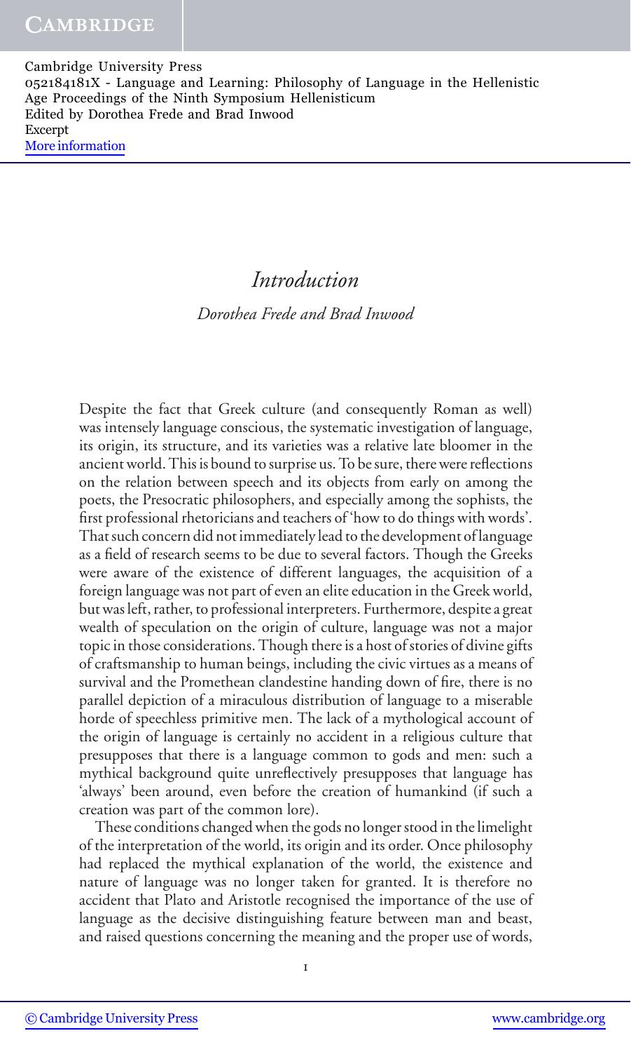 Language and Learning: Philosophy of Language in the Hellenistic ...
