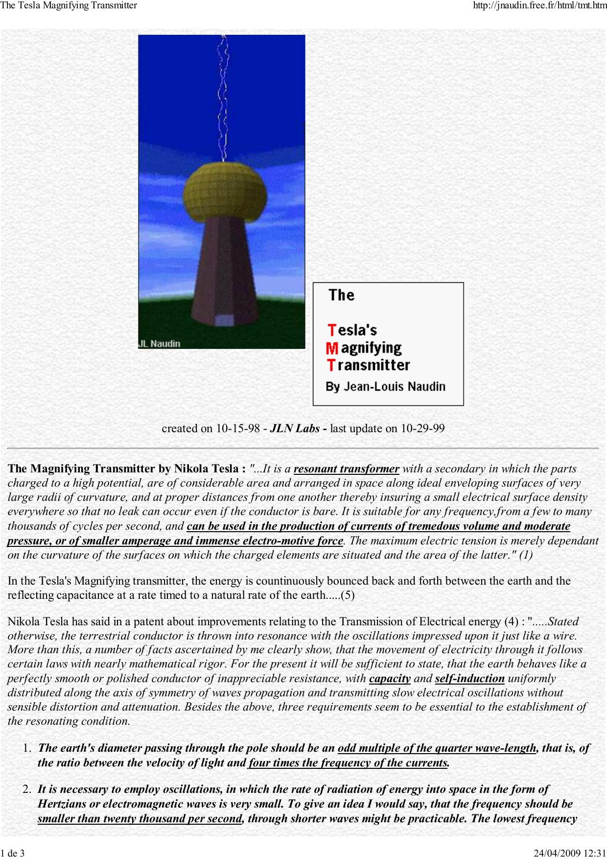 The Magnifying Transmitter by Nikola Tesla