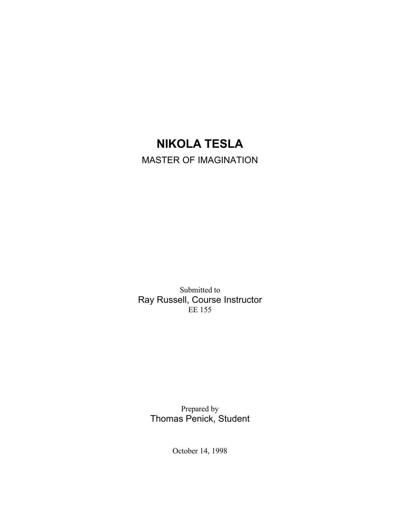 Nikola Tesla - Master of Imagination - Essay